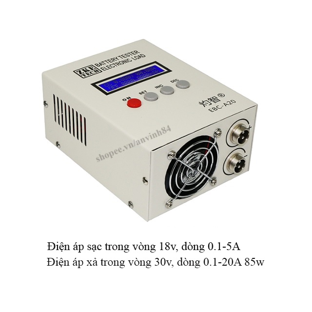 EBC-A20 là thiết bị kiểm tra pin có chức năng sạc và xả, thích hợp để kiểm tra dung lượng pin lithium / axit-chì (sạc 5A, xả 20A, công suất tối đa 85W), hỗ trợ kiểm tra sạc, xả và sạc một lần riêng biệt, hỗ trợ kết nối Máy tính, thông qua phần mềm trực tuyến, nó có thể được sạc và xả nhiều lần và có nhiều chức năng mở rộng hơnMô hình: EBC-A20