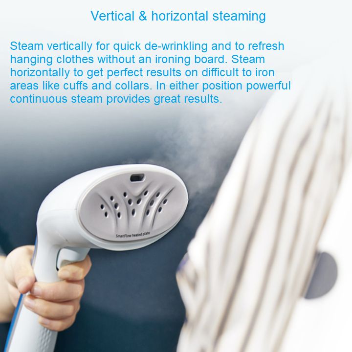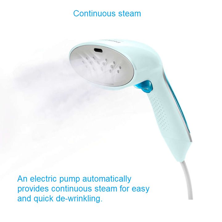 - Bơm điện cung cấp luồng hơi nước liên tục (22g/phút) để nhanh chóng và dễ dàng loại bỏ vết nhăn.