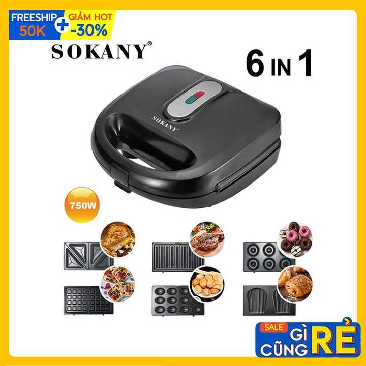 Giới thiệu [Mã ELHADEV giảm 4% đơn 300K] Máy làm bánh 6 khuôn Sokany Cao cấp, nướng bánh mì kẹp Sandwich