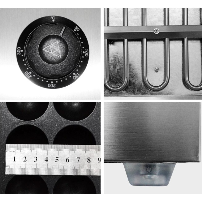 +Phần khay nướng: Khay nướng hình chữ nhật kích thước 30x20cm đường kính viên là 40mm số lượng 28 viên cho 1 lần.Khay nướng được tráng men chống dính vì vậy khi nướng chảo không bị xác bánh.