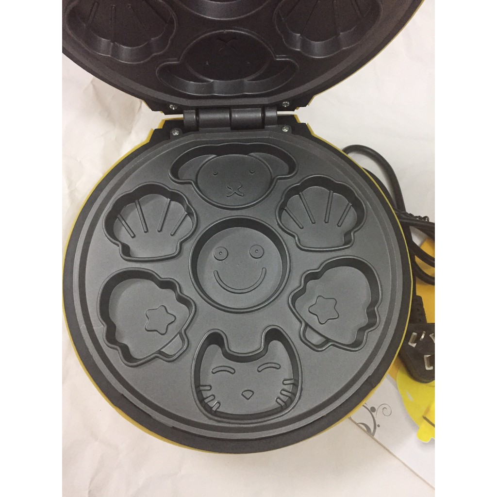 - Máy làm bánh hoàn toàn sử dụng bằng điện năng để nướng chín bánh với khay nướng chống dính, bạn sẽ dễ dàng lấy bánh ra mà không sợ bánh bị nát hay bị vỡ. Máy với 07 khuôn hình ngộ nghĩnh đáng yêu như hình hoa, mặt cười, mèo kitty, heo con...