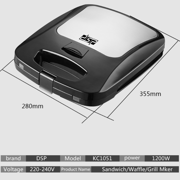Máy làm bánh sandwich, bánh waffle,... 3 trong 1. Thương hiệu cao cấp DSP - KC1051, công suất 1200WTiếp nối thành công phiên bản máy làm bánh 2 trong 1 KC1049 . Hãng DSP đã cho ra đời dòng sản phẩm Máy làm bánh 2 trong 1 nhãn hiệu DSP KC1051 nâng cấp một số tính năng mới như: Công suất 1200W, gập 180 độ, tích hợp khay hứng dầu, kích thước lớn hơn, có thể gập lại trở hành máy nướng BBQ thơm ngon...