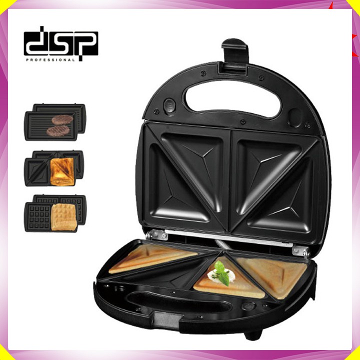 Thiết Bị Điện Gia Dụng > Đồ gia dụng nhà bếp > Máy nướng bánh || Máy Làm Bánh đa năng 3 trong 1 thương hiệu DSP KC1049 - 3 loại vỉ nướng đi kèm - Công suất 750W - Hàng Nhập KhẩuCòn hàng