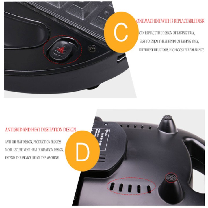 Máy Làm Bánh 3 Trong 1 nhãn hiệu DSP KC1049- Máy làm bánh 3 trong 1 DSP KC1049 với 3 loại vỉ nướng đi kèm, bạn có thể làm các loại bánh khác nhau như bánh sandwich, bánh waffle, bánh quy, bánh trứng,... hay nướng thức ăn trực tiếp ngay trên vỉ.