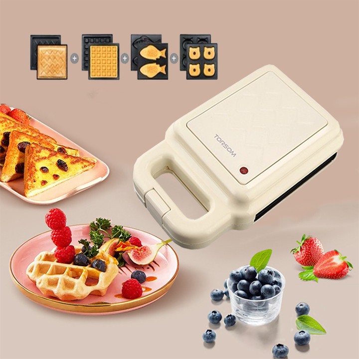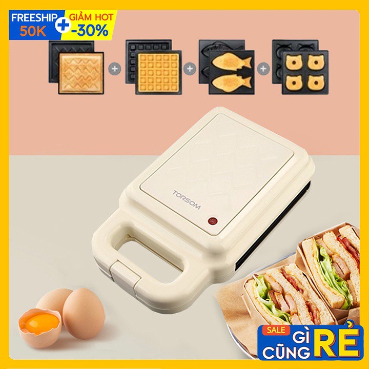 [Mã ELHADEV giảm 4% đơn 300K] Máy làm bánh đa năng 4 khuôn Torsom - Nướng bánh mì sandwich, waffle, bánh cá, Donut