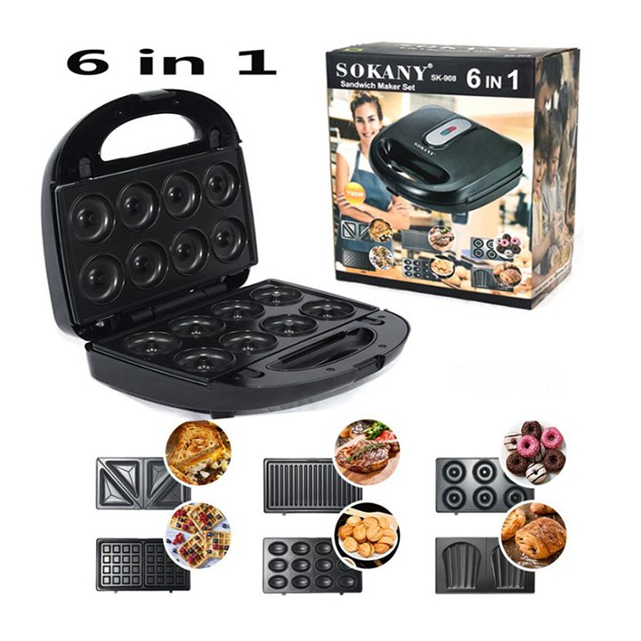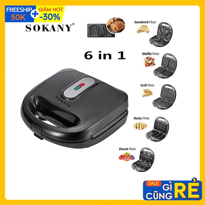Thiết Bị Điện Gia Dụng > Đồ gia dụng nhà bếp > Máy nướng bánh || Máy làm bánh đa năng, nướng kẹp bánh mì 6 in 1 SOKANYCòn hàng