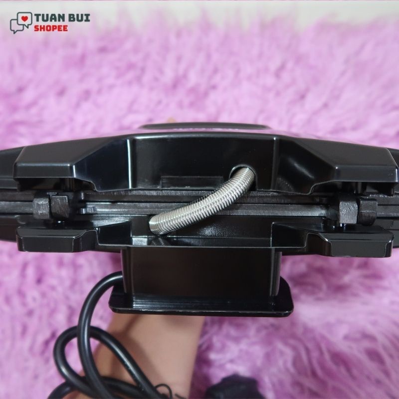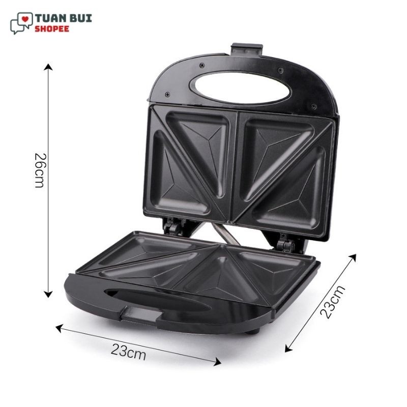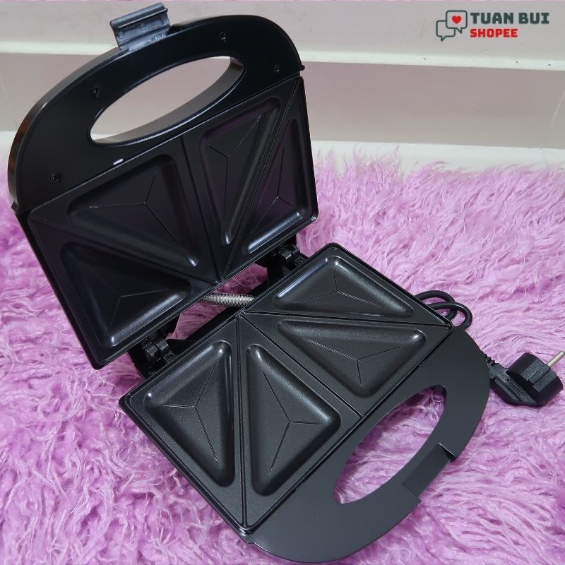 - Tay cầm của máy có khóa chốt, giúp giữ hai nắp của khuôn bánh ép chặt vào nhau khi nướng.