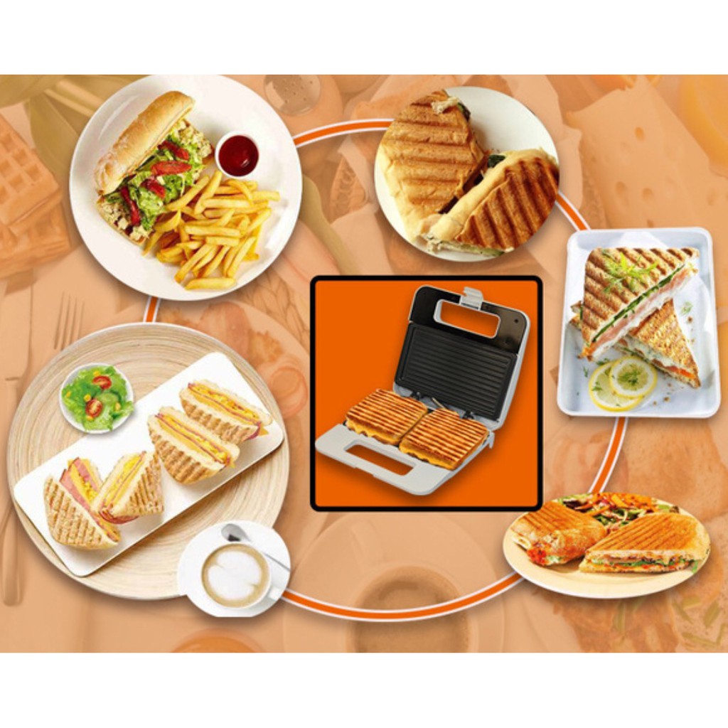 - Chức năng: làm bánh hotdog hoặc kẹp sandwich.Bạn có thể kẹp sandwich với bơ, pate, thịt, trứng, mứt quả…và bỏ vào máy, sau 3 đến 5 phút, phần vỏ bánh sẽ được nướng dòn, vàng và thơm phức. Phần nhân thịt bên trong vừa chín tạo vị thơm ngon, hấp dẫn cho bữa ăn đầy dinh dưỡng bên gia đình.