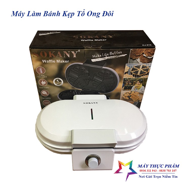 Máy làm bánh kẹp tàn ong,máy làm bánh bông lan đôi sokany bảo hành 12 tháng