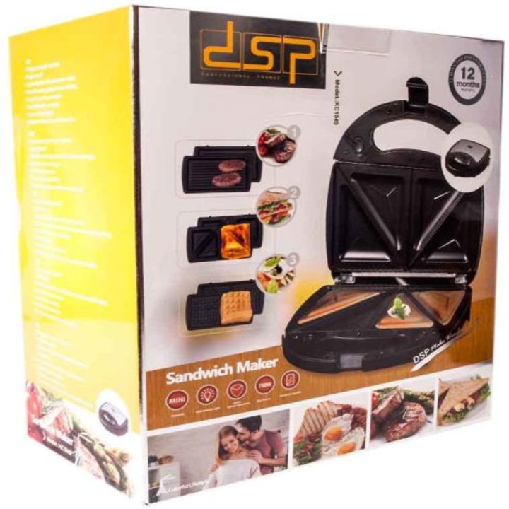 Máy làm bánh, kiêm nướng bánh cao cấp 3 trong 1, thương hiệu cao cấp DSP - KC1049- Máy làm bánh 3 trong 1 DSP KC1049 với 3 loại vỉ nướng đi kèm, bạn có thể làm các loại bánh khác nhau như bánh sandwich, bánh waffle, bánh quy, bánh trứng,... hay nướng thức ăn trực tiếp ngay trên vỉ.