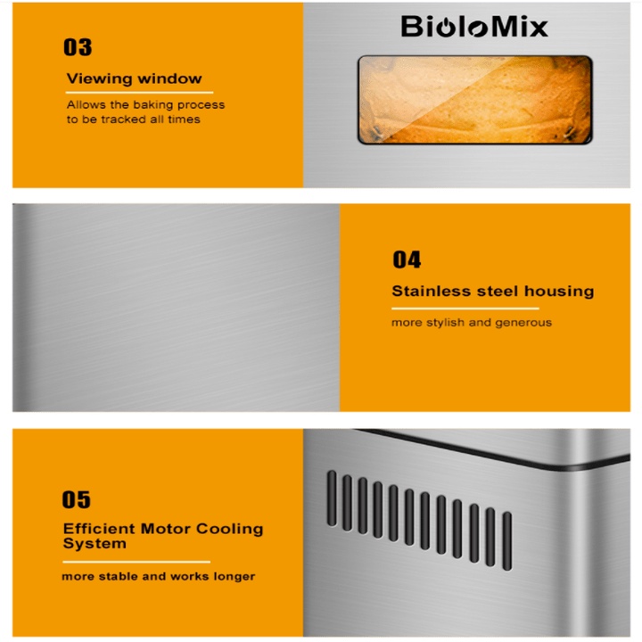 Máy làm bánh mì BioloMix BBM013 - tích hợp 17 chương trình tự động🎁 Hộp đựng bánh chống dính Teflon: Khỏe mạnh hơn và an toàn cho máy rửa chén;