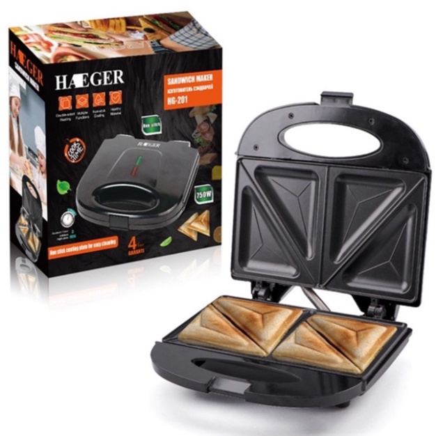 Thiết Bị Điện Gia Dụng > Đồ gia dụng nhà bếp > Máy nướng bánh || Máy làm bánh mì kẹp Sandwich, nướng bánh mỳ khuôn tam giác chính hãng HAEGERCòn hàng