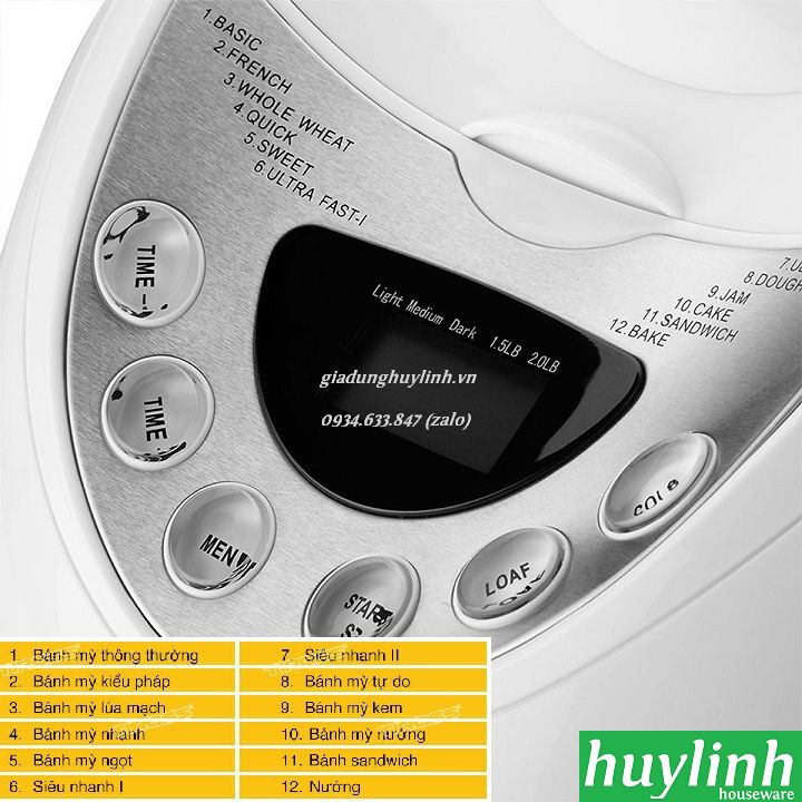 - Máy có 3 mức điều chỉnh màu bánh: vàng nhạt - trung bình - đậm để bạn lựa chọn tùy theo sở thích.