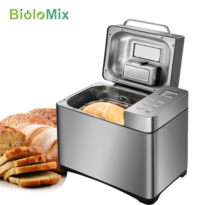 - Với vỏ thép làm từ thép không gỉ đảm bảo các bữa ăn lành mạnh tự tay chính bạn làm ra. Bạn không chỉ có thể nướng bánh mì trong đó, mà bạn có thể sử dụng BioloMix BBM013 để nấu mứt và làm bột mì ống, bánh mì hoa cúc, làm dăm bông. Trộn đều chính xác cho mọi hương vị – cho dù bánh mì hạt bí ngô là loại thập cẩm đặc biệt (có thể chọn mức độ nấu và kích thước bánh mì), cho dù là mứt với hoa quả theo mùa hay mì sợi ống với các loại gia vị đặc biệt.