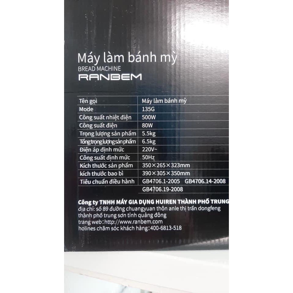 Thiết Bị Điện Gia Dụng > Đồ gia dụng nhà bếp > Dụng cụ nấu đặc biệt > Máy làm bánh mì || Máy làm bánh mì tự động RANBEM 135G Sách hướng dẫn bàn phím 100% tiếng việt tặng kèm file công thức làm bánhCòn hàng
