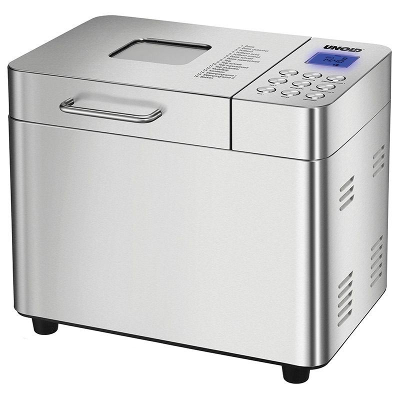 - Máy làm bánh mì Unold 68415 nhập khẩu Đức cung cấp bánh mì từ 750 đến 1.200 gram (cũng không chứa gluten). Mười một chương trình đã lưu và một chương trình riêng lẻ có sẵn để lựa chọn.