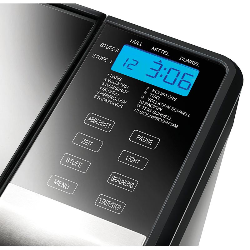 - Toàn bộ các việc thao tác cùng các thông tin liên quan sẽ được hiển thị trên màn hình LCD và được điều khiển bằng các nút nhấn dạng cảm biến nhẹ nhàng, không phát ra tiếng ồn như các phím cơ. Máy Làm Bánh Mì Unold 68415 sẽ hoạt động hoàn toàn tự động sau khi chúng ta chọn các thông số theo yêu cầu.