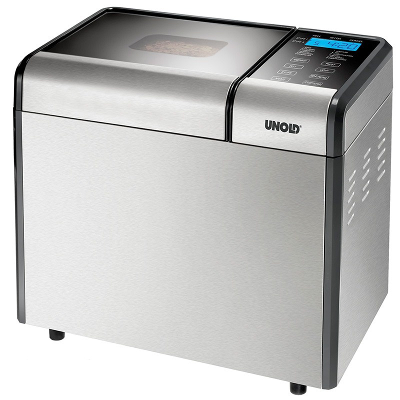 - Máy Làm Bánh Mì Tự Động Unold 68415 có thể chọn mức độ chín vàng và kích thước bánh mì cho trọng lượng khoảng 750 đến 1.200 gram thông qua bảng điều khiển cảm biến và quá trình nướng có thể được lập trình trước trong khoảng tối đa 13 giờ.