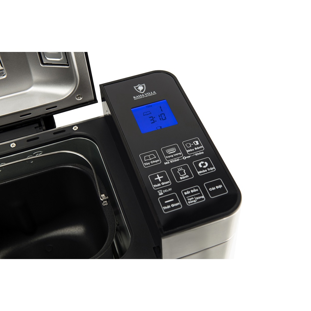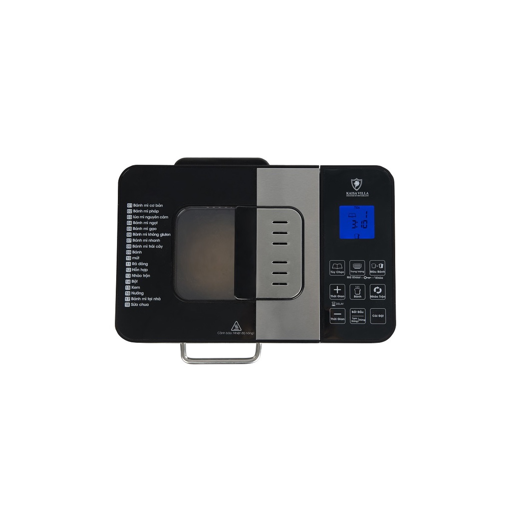 - Máy làm bánh mì Kaisa Villa có 18 chức năng tự động mặc định giúp người mới dùng cực kỳ dễ sử dụng. Do đó, bạn hoàn toàn không phải lo lắng rằng không biết sử dụng máy. Máy được trang bị khay đựng nguyên liệu khô (hoa quả sấy, hạt..) riêng biệt và nguyên liệu sẽ được chương trình tự động thả vào công đoạn phù hợp trong quá trình làm bánh mà bạn không mất công canh thời gian để thêm nguyên liệu khô.