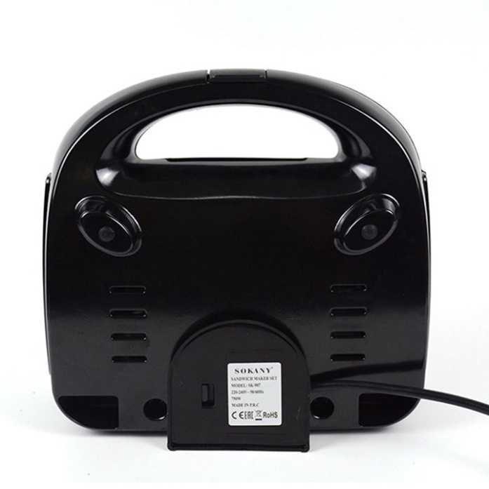 Máy làm bánh SOKANY sẽ giúp bạn chuẩn bị một bữa ăn nhanh chóng tiện lợi mà vẫn đảm bảo dinh dưỡng và tốt cho sức khoẻ. Máy có công suất 750W, kiểu dáng hiện đại, sang trọng, tay cầm chắc chắn cùng hệ thống đèn báo điện nguồn và trạng thái sử dụng, luôn hoạt động chính xác, cho phép bạn theo dõi quá trình nướng bánh mà không phải mở nắp thiết bị.THÔNG SỐ KỸ THUẬT: