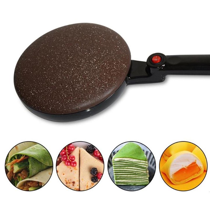 Bộ sản phẩm gồm Chảo điện/dụng cụ đựng bột/dụng cụ đánh trứng bộtThiết kế tinh sảo,đơn giản dễ dùng:có thể làm bánh Vịt quay,bánh cuốn,bánh nướng,...vv.Sử dụng đồ dùng ít,thời gian ngắn,bánh mong sau khi nướng to nhỏ,dày mỏng đều đặn,giảm những công đoạn nướng bánh truyền thống.