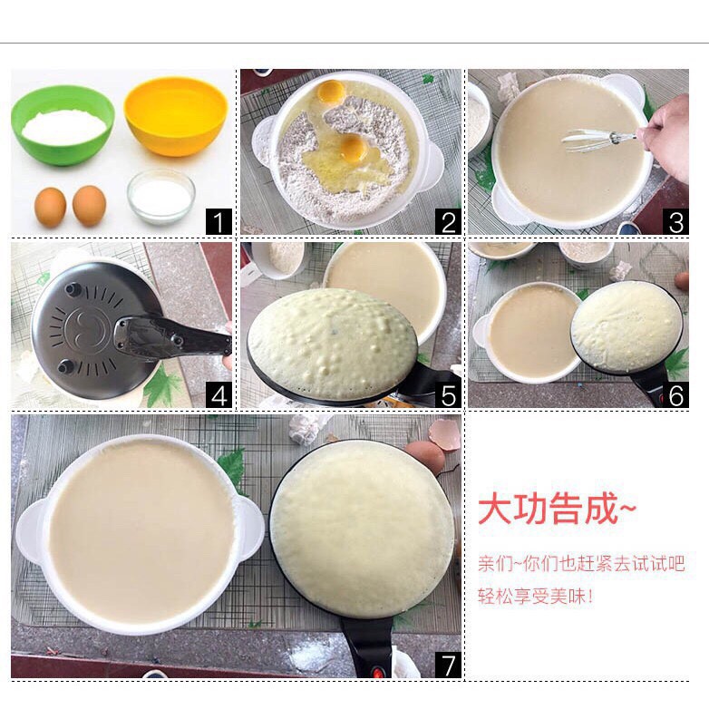Bộ sản phẩm gồm Chảo điện/dụng cụ đựng bột/dụng cụ đánh trứng bột