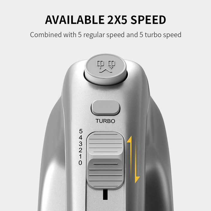 - Máy đánh trứng Shardor HM315S có 5 mức tốc độ đánh cho người dùng lựa chọn, đáp ứng được mọi yêu cầu của người dùng. Chức năng Turbo gia tốc nhanh giúp máy làm việc thêm hiệu quả, nhanh gọn, tiết kiệm thời gian.