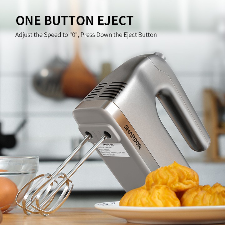- Máy đánh trứng Shardor HM315S đi kèm đế đựng, 2 que trộn và 2 que đánh trứng, hỗ trợ bạn thực hiện công việc đánh trứng, trộn bột đơn giản, nhanh chóng. Que trộn dễ tháo rời ra khỏi thân máy để vệ sinh