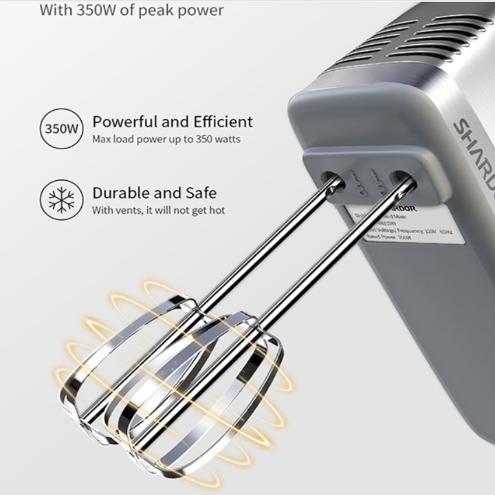 Máy làm bánh và đánh trứng cầm tay cao cấp. Thương hiệu Shardor - HM315S: Công suất 350WThiết kế đa năng