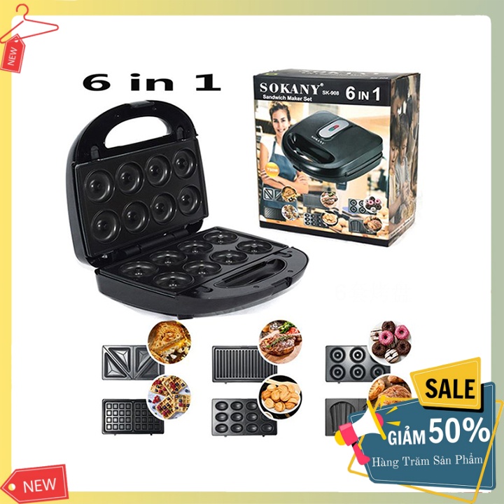 Thiết Bị Điện Gia Dụng > Đồ gia dụng nhà bếp > Dụng cụ nấu đặc biệt > Máy làm món tráng miệng || Máy làm bánh waffle, bánh quế, nướng bánh mì 6 khuôn đa năng SokanyCòn hàng