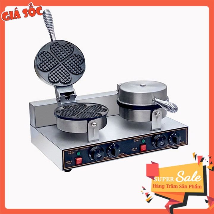 [Mã ELHADEV giảm 4% đơn 300K] Máy Làm Bánh Waffle, Bánh Tổ Ong Khuôn Trái Tim Công Nghiệp Đôi