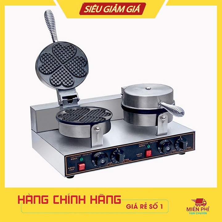Máy Làm Bánh Waffle Khuôn Trái Tim Đôi Công Nghiệp