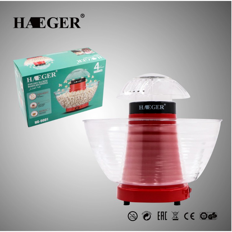 Thiết Bị Điện Gia Dụng > Đồ gia dụng nhà bếp > Dụng cụ nấu đặc biệt > Máy làm món tráng miệng || Máy Làm Bỏng Ngô Tại Nhà - 1200W - HAEGER HG-9001Còn hàng
