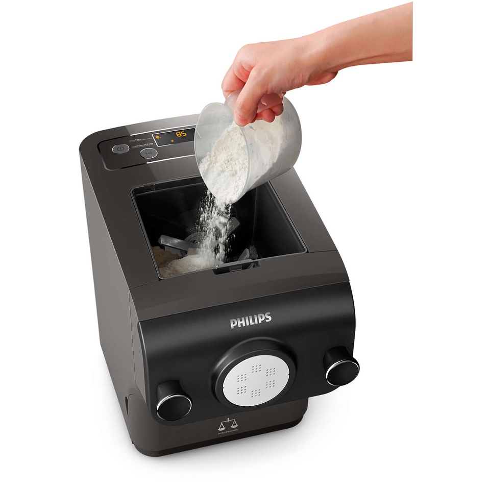 - Chức năng cân tích hợp và màn hình số: Thang đo tích hợp đơn giản hóa việc phân chia các thành phần để bạn dễ dàng có được lượng bún hay mì như mong muốn: Đặt lượng bột mong muốn vào buồng nhào, màn hình kỹ thuật số hiển thị lượng chất lỏng tối ưu cần thiết. Điều này làm cho toàn bộ quá trình dễ dàng và thuận tiện hơn.