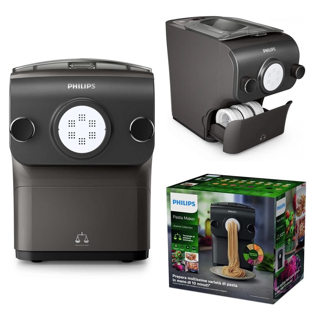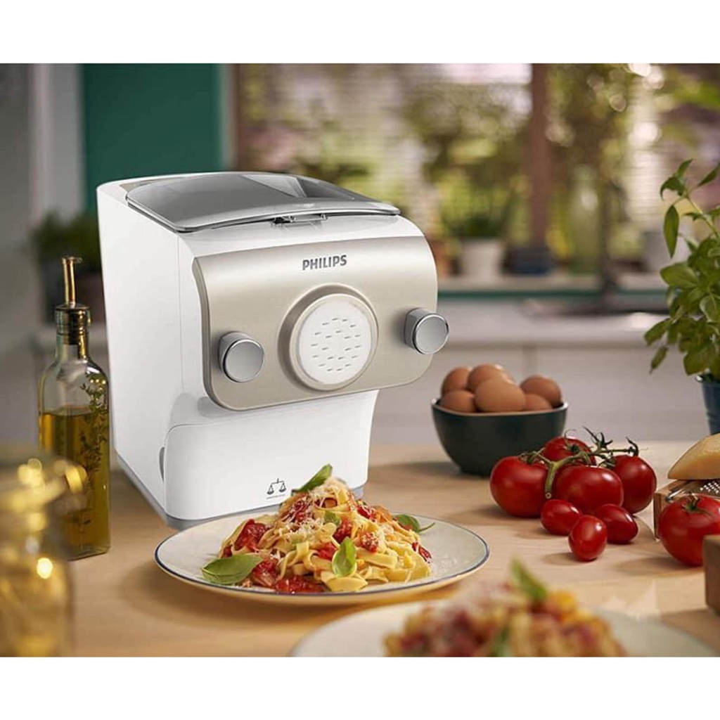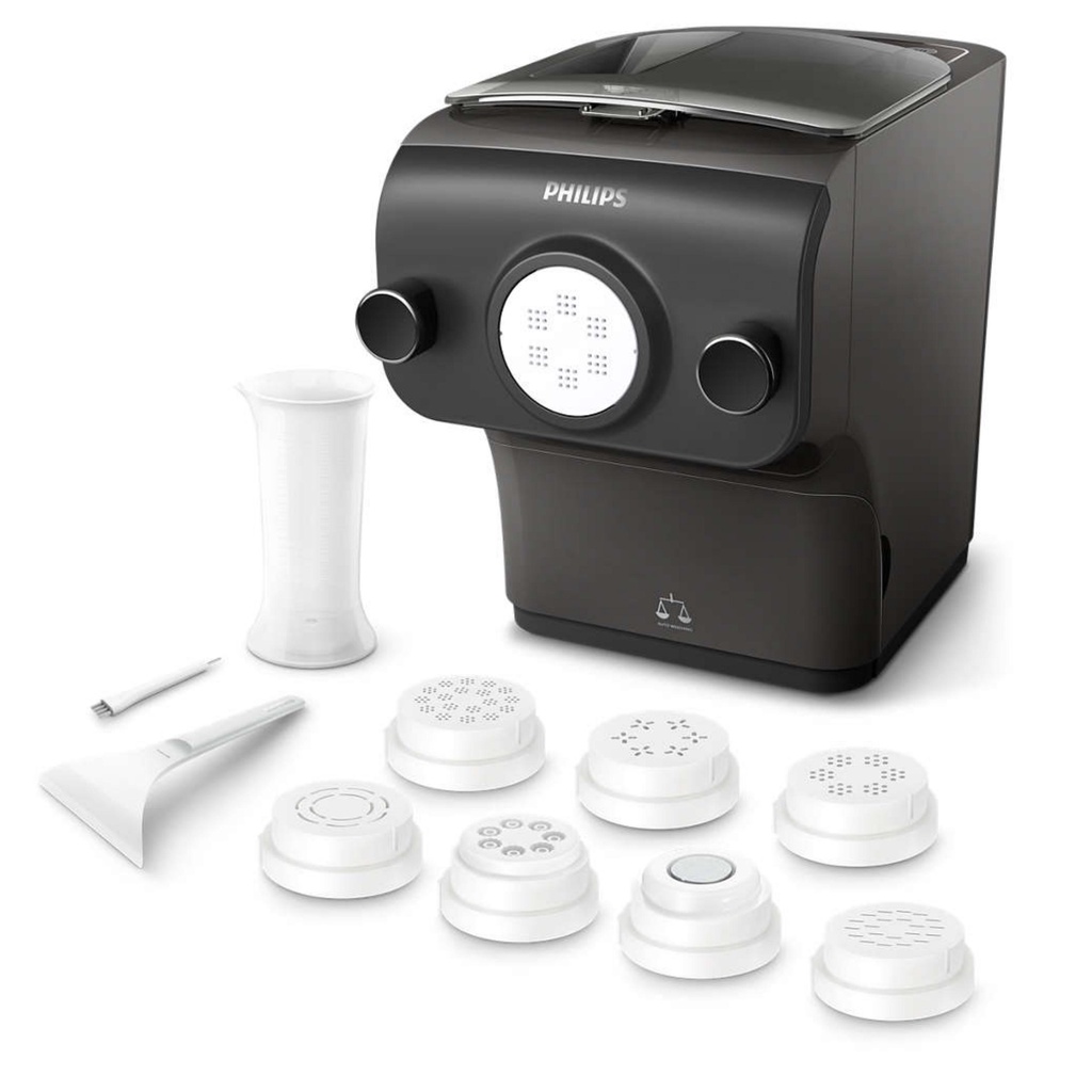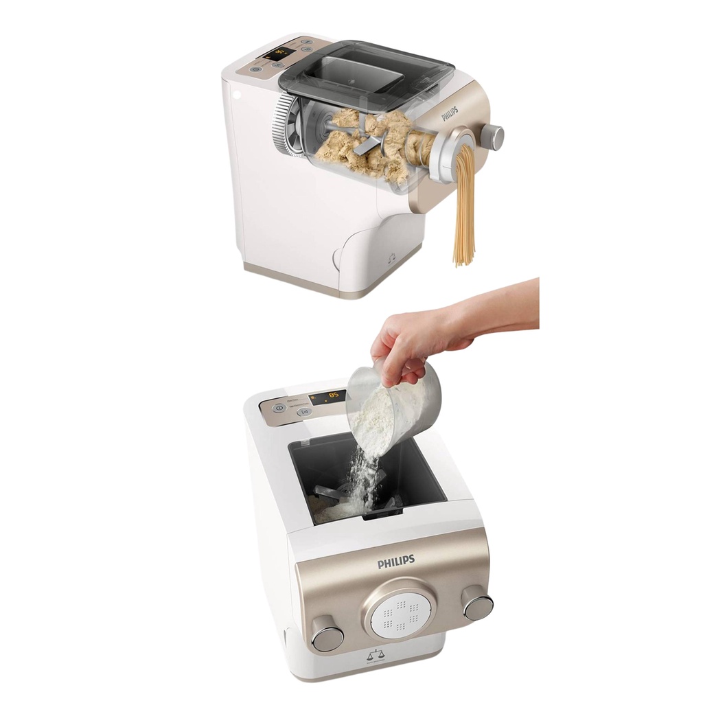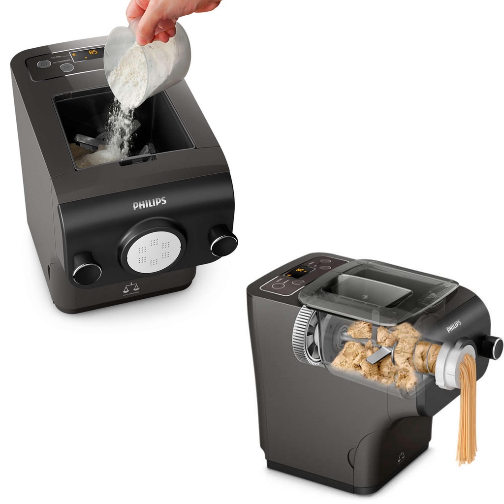 Máy làm bún mì Philips HR2382/15 2381/15 – Cân tự động để chuẩn công thức và dễ dàng hơn. Làm Pasta tươi chỉ trong 10 phút. Hoàn toàn tự động với quy mô tích hợp. Bao gồm 8 kích cỡ khuôn bún đi kèm.