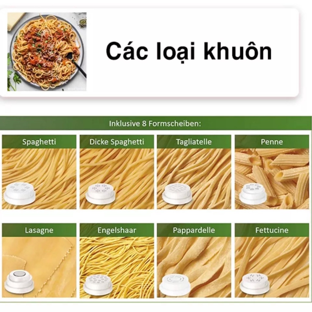 - Phù hợp: tự làm bún mì tươi,mì sợi spaghetti,pasta,mì ống tròn dẹt tại phòng bếp gia đình,nhà hàng nhỏ