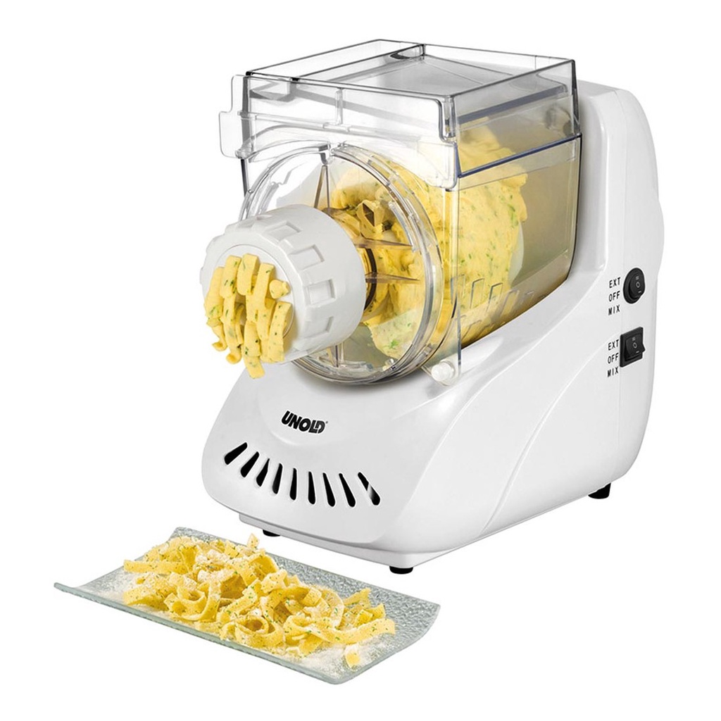 Máy làm mì tự động Unold 68801 có thể làm được nhiều loại mì nhờ những đầu ống khác nhau. Máy làm mì Pasta Unold 68801 có thể làm được 500 gram bột mì. Chỉ cần cho các nguyên liệu vào trong máy làm mì Unold 68801 và bật nút, máy sẽ tự động nhồi bột sau đó đẩy thành phẩm ra ngoài theo dạng sợi bạn mong muốn. Chỉ mất vài phút là cả nhà có được món mì tươi đầy hấp dẫn.