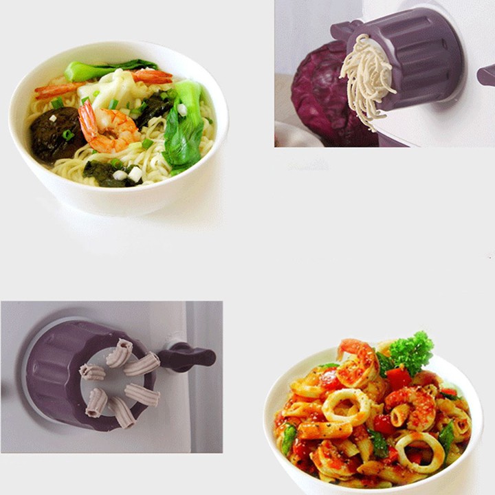- Bước 4: Bạn chuẩn bị sẵn khay hứng mì, đặt phía dưới mắt ra mì. Sau khi hết thời gian, mì sẽ chạy ra từ mắt ra mì, rắc thêm bột để mì không bị dính vào nhau, và có thể cắt mì theo độ dài ngắn tùy ý thích của bạn.