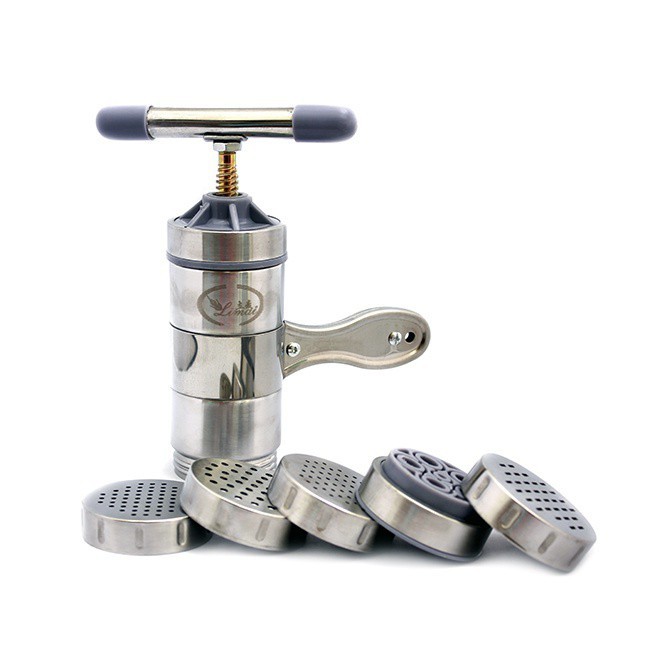 Máy làm Làm Bún, Mì Sợi, Nui tại nhà ( 05 khuôn - Inox )Dụng cụ làm Bún, làm Mì sợi, làm Nui gia đình nhanh chóng và dễ dàng với 05 khuôn từ nhỏ đến to