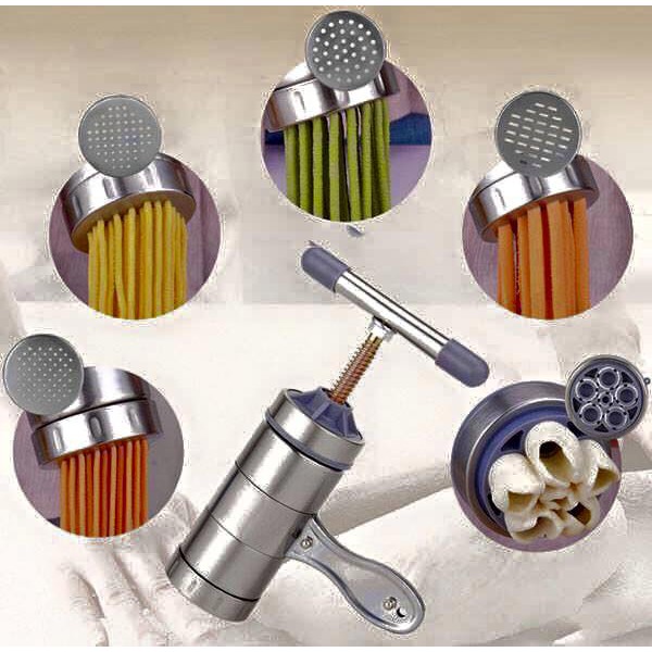 Bộ sản phẩm được làm hoàn toàn bằng inox không gỉ cao cấp ít bám dầu mỡ, dễ rửa, không bị mốc, không độc hại, giúp tạo tự mình làm ra những sợi bún hoặc mì ngay tại nhà một cách nhanh chóng.