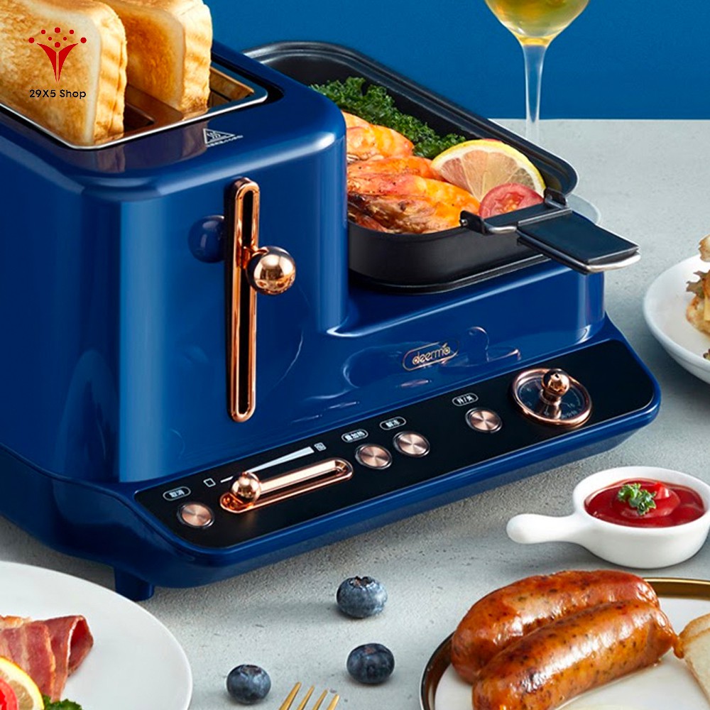 Ngoài ra, chiếc máy là sự kết hợp giữa các chức năng nướng bánh mỳ, đi kèm chảo rán, vỉ hấp cung cấp cho bạn một bữa sáng đủ chất và nhanh gọn nhất. Kết cấu đa năng này không chỉ giúp tiết kiệm tối đa thời gian làm bữa sáng cho những người nội trợ bận rộn mà còn đáp ứng đầy đủ nhu cầu chế biến bữa sáng từ món Tây đến món Á,...đa dạng bữa ăn cho cả gia đình.