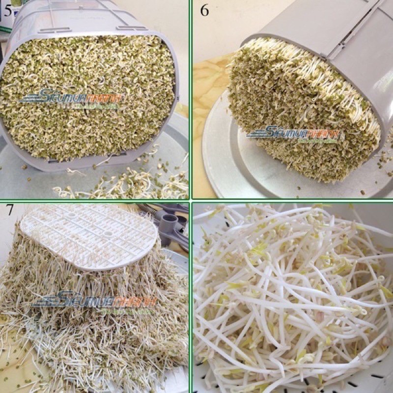 Thiết kế đa năng có thể làm giá đỗ, rau mầm, làm dưa hành, cà thể làm từ 100 – 300 gram đỗ: 100 gram đỗ xanh được 0,8 kg rau giá. 200 gram đỗ xanh được 1,6 kg rau giá. 300 gram đỗ xanh được 2,5 kg rau giá.