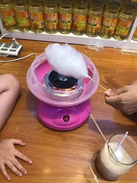 - Chiếc máy hoạt động rất đơn giản: chỉ cần khởi động, bỏ 2 thìa đường hay kẹo oishi (giã nhỏ) vào thân máy và bạn đã có thể quay đều que cầm để có được một thanh kẹo bông ngọt lịm, mix màu, mùi rất thú vị. Máy làm kẹo bông gòn mini này là món quà gia đình tuyệt vời, có thể đưa mọi người cùng trở lại tuổi thơ. với chiếc máy này, các bố mẹ có thể cùng con làm kẹo bông ngay tại nhà rất sạch sẽ và đơn giản, làm cho bữa tiệc party của bé cực kỳ sôi động.
