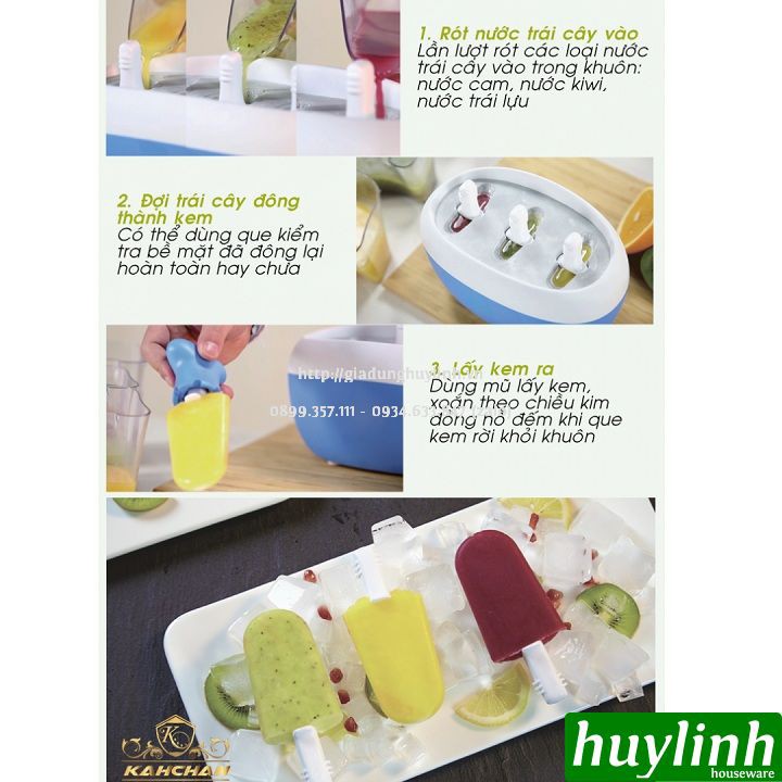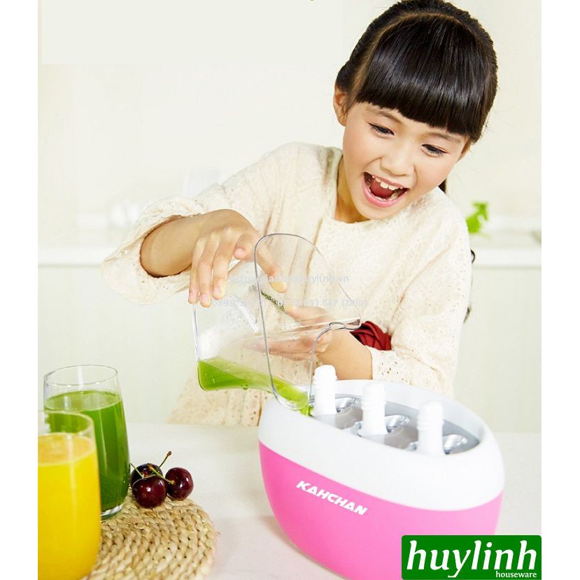 - Máy làm kem que Kahchan KEM2173 được thiết kế với kiểu dáng nhỏ gọn với màu sắc xanh, hồng bắt mắt đem đến sự thích thú cho các em nhỏ khi được tự làm kem tại nhà. Máy làm kem Kahchan giúp bạn có thể tự tay làm những que kem vô cùng ngon lành và sạch sẽ, đảm bảo 100% an toàn với tất cả các vị kem tươi và màu sắc tự nhiên từ trái cây mà không dùng bất kỳ loại hoá chất hay phẩm màu nào khác.
