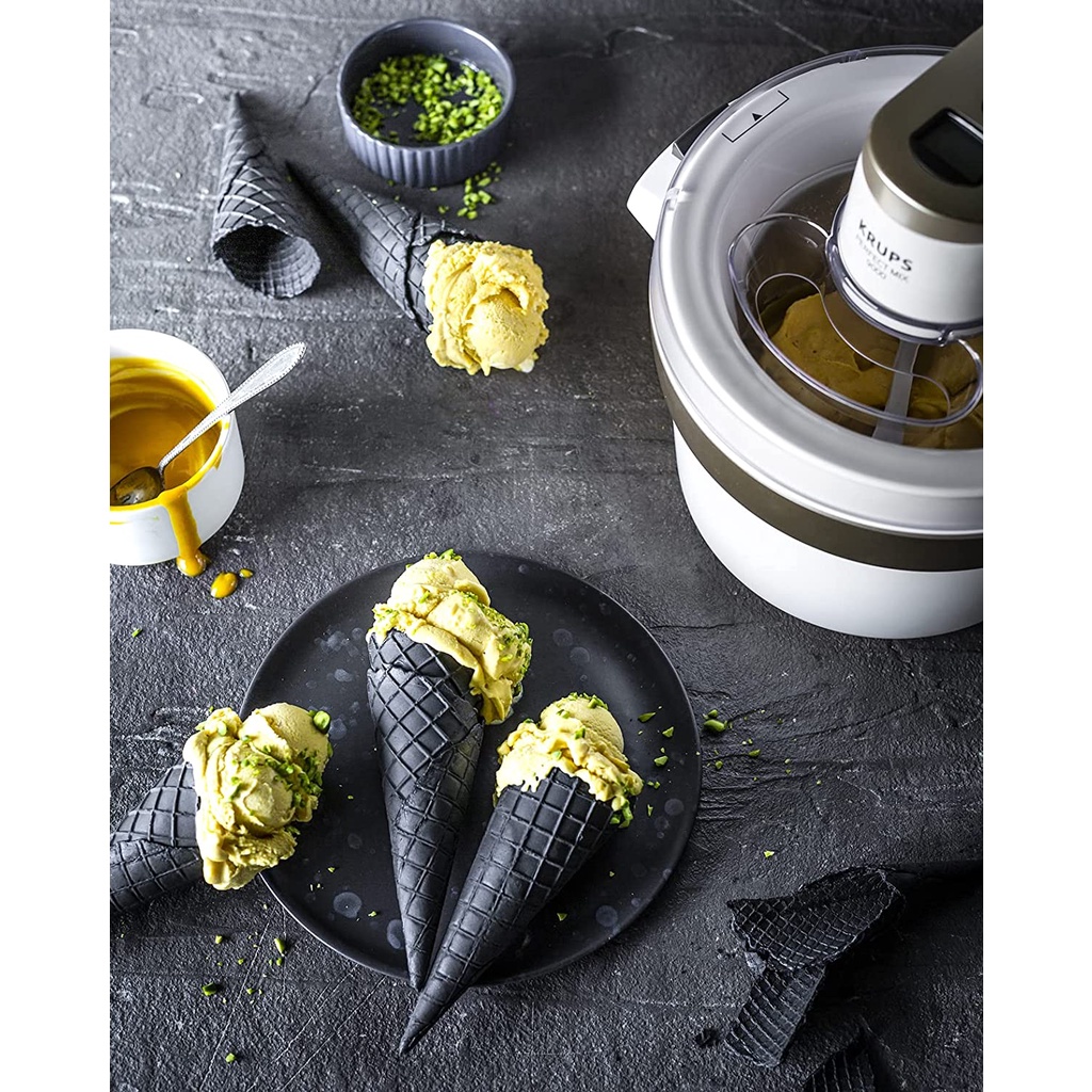 - Với máy làm kem hoàn hảo của KRUPS 'MIX 9000, bạn có thể nhanh chóng chuẩn bị kem và các món tráng miệng đông lạnh khác: thưởng thức kem ngon, sorbets và sữa chua đông lạnh.