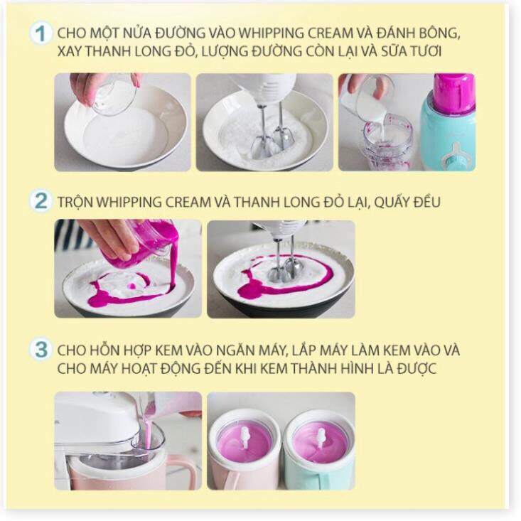 Có thể làm kem bằng bột làm kem chỉ trộn nguyên liệu theo hướng dẫn sau gói rồi cho vào bowl.