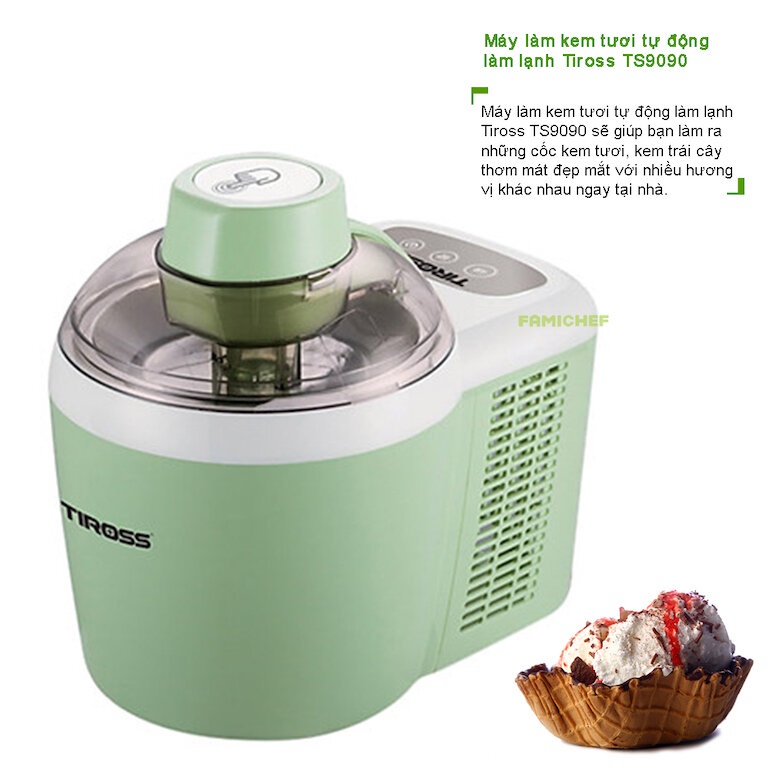 Giới thiệu [Mã ELHADEV giảm 4% đơn 300K] Máy làm kem tươi gia đình Tiross TS-9090, Chính Hãng, Bảo Hành 12 Tháng