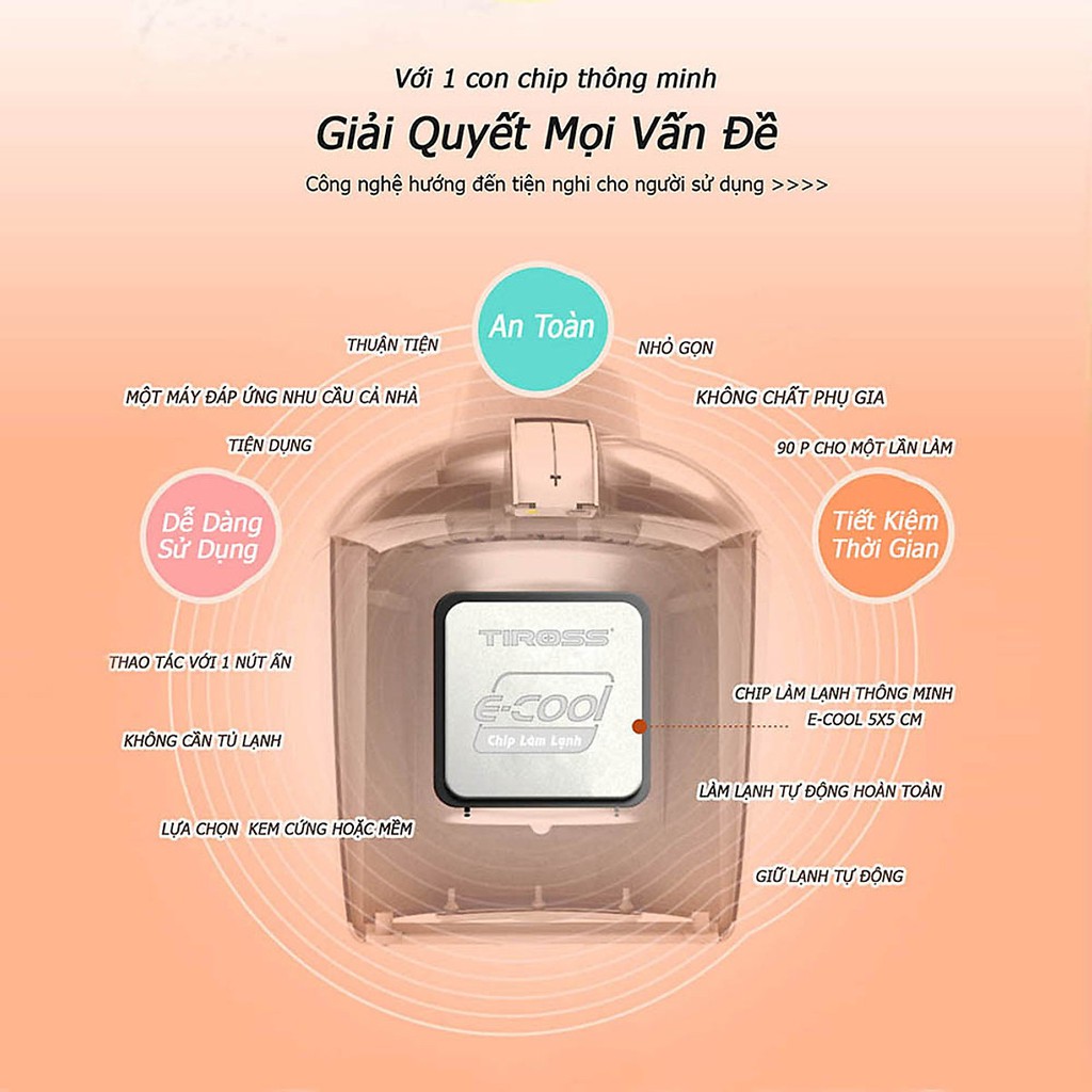 Sản phẩm ứng dụng công nghệ hướng đến sự tiện nghi cho người dùng với 1 con chip thông minh có tên gọi Chip E-COOL. Chip E-COOL có khả năng làm lạnh siêu tốc, chỉ 90 phút cho một lần làm kem và thời gian giữ lạnh lâu gấp 2 lần máy làm kem thông thường giúp tiết kiệm điện năng cũng như thời gian chế biến.