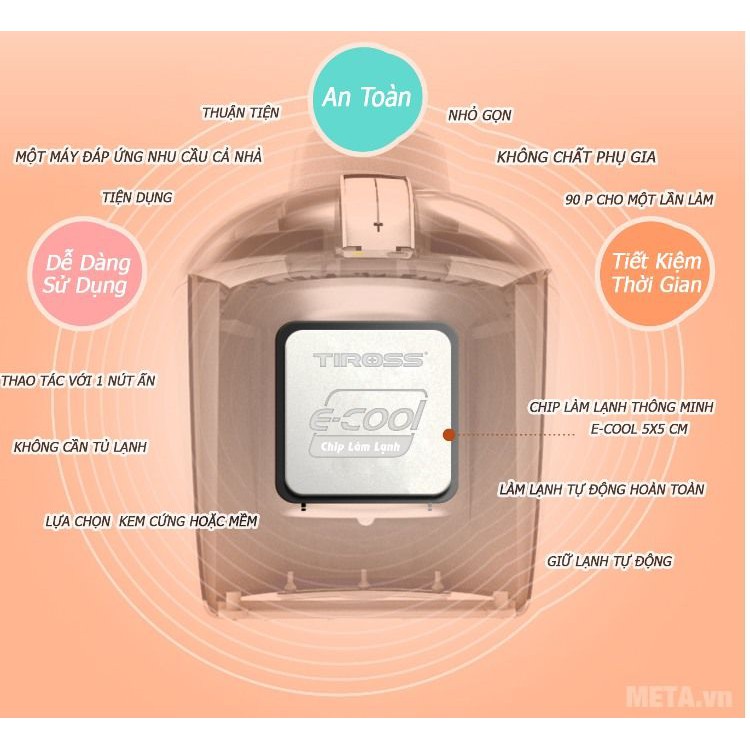 Máy làm kem Tiross TS-9090 với thiết kế nhỏ gọn, dễ sử dụng, làm kem nhanh nhờ sử dụng chip E-Cool làm lạnh siêu nhanh, giữ lạnh trong 6 giờ, sẽ là bí quyết làm kem ngon mà không phải ai cũng có được. Sản phẩm máy làm kem này được phản hồi rất tốt từ khách hàng.
