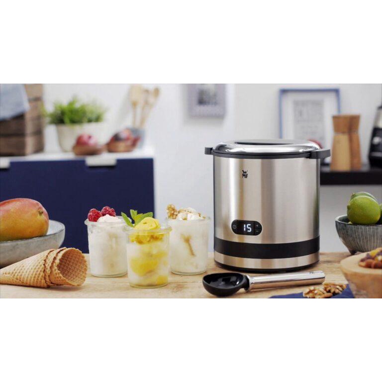 - Bạn có thể tự mình chuẩn bị các món kem mềm, sữa chua đông lạnh chỉ trong vài phút với máy làm kem WMF 3 in 1 nhỏ gọn.